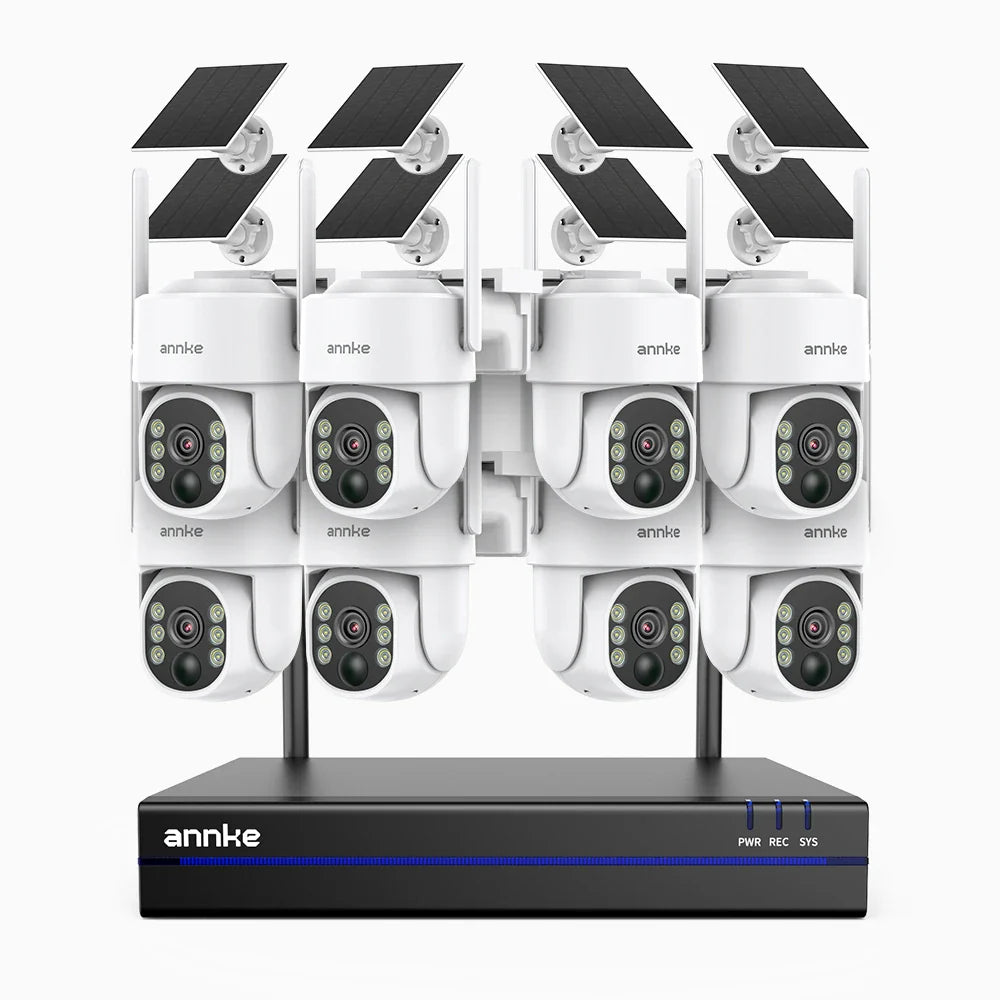 WBS400 - Zestaw do Monitoringu Bezprzewodowych 8 Kamery 4Mpx z 8-Kanałowy Rejestratorem NVR, podwójne pasmo WiFi 2,4/5,8 GHz Pro, detekcja ludzi AI, dwukierunkowy dźwięk, zasilanie bateryjne i solarne, obrót 270° i pochylenie 90°, kompatybilny z Alexa