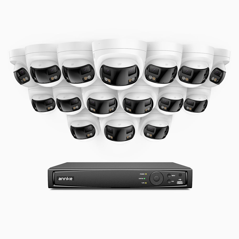 FDH800 - Zestaw do Monitoringu PoE 16 Kamery 8Mpx 4K z 16-Kanałowy Rejestratorem NVR, Podwójny obiektyw, panoramiczny widok 180°, inteligentne podwójne oświetlenie nocne, dwukierunkowy dźwięk, aktywna syrena i alarm, wykrywanie ludzi i pojazdów, IP67
