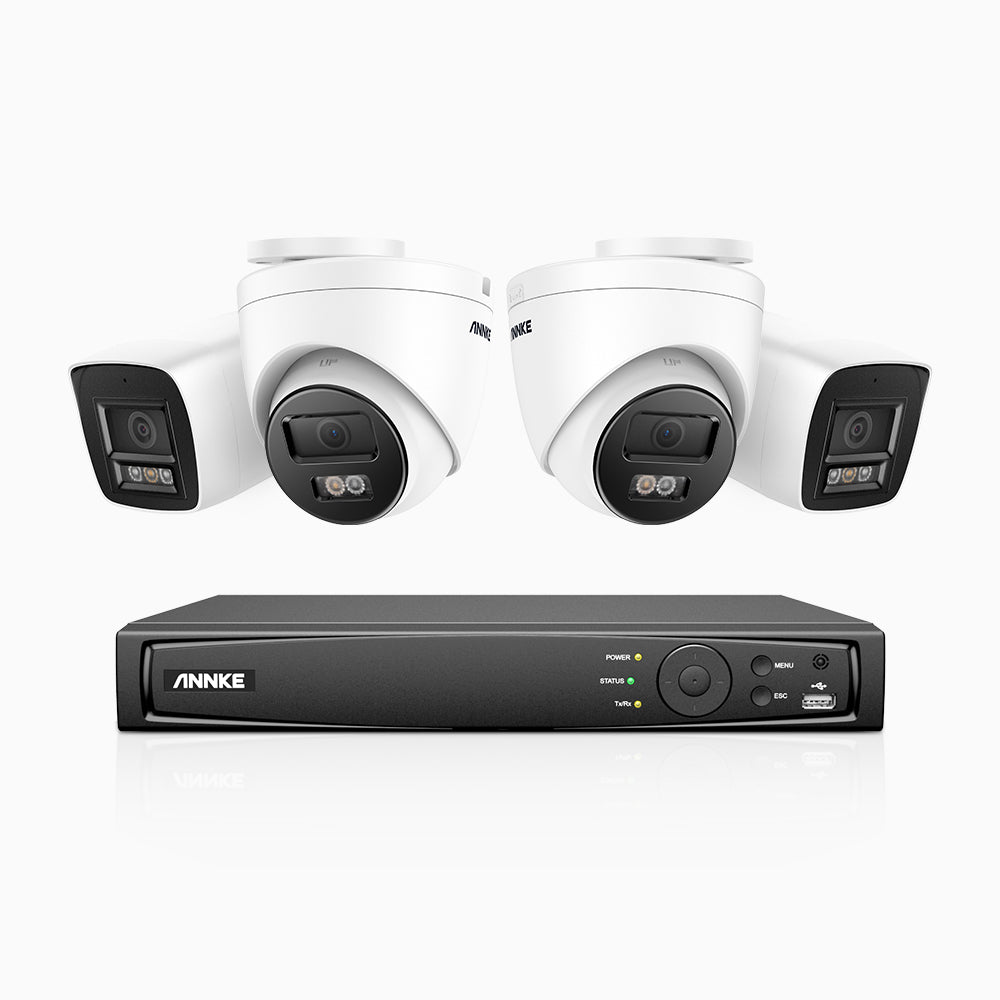H1200 - Zestaw do Monitoringu PoE 4 Kamery (2 Tubowa & 2 Kopułkowa) 4K 12MP z 8-Kanałowy Rejestratorem NVR, Noktowizja Pelny Kolor & EXIR, Wykrywanie Ludzi i Pojazdów, H.265+, Wbudowany Mikrofon, Maks. 512 GB Lokalnego Magazynu, IP67