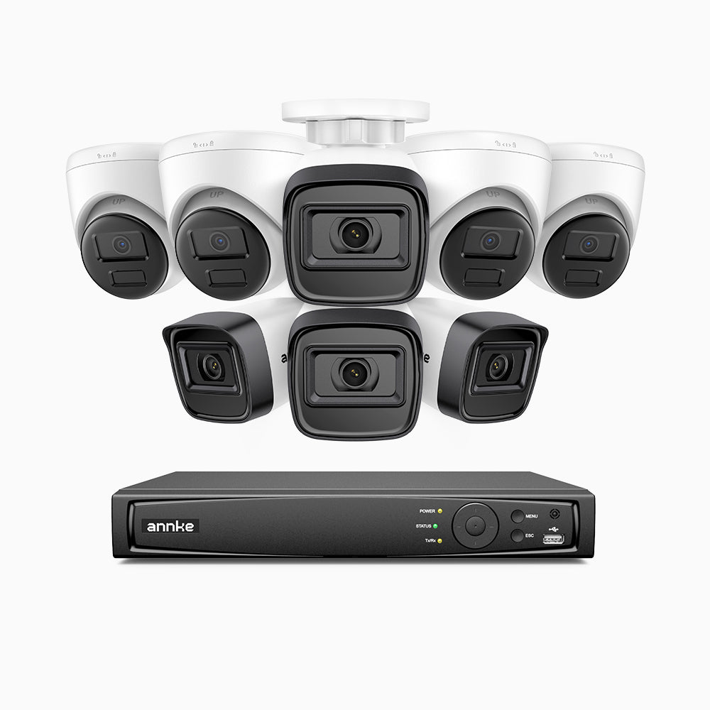 H300 - Zestaw do Monitoringu PoE 8 Kamery (4 Tubowa & 4 Kopułkowa) 3MP z 16-Kanałowy Rejestratorem NVR, EXIR 2.0 Night Vision, wykrywanie ruchu, H.265+, wodoodporność IP67