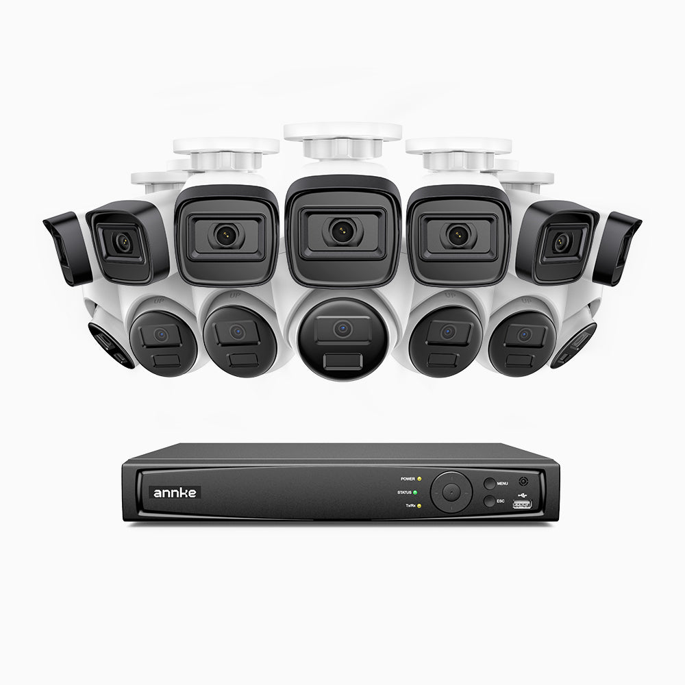 H300 - Zestaw do Monitoringu PoE 14 Kamery (7 Tubowa & 7 Kopułkowa) 3MP z 16-Kanałowy Rejestratorem NVR, EXIR 2.0 Night Vision, wykrywanie ruchu, H.265+, wodoodporność IP67