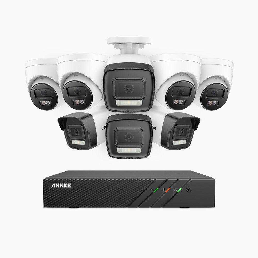 H500P - Zestaw do Monitoringu PoE 8 Kamery (4 Tubowa & 4 Kopułkowa) 3K z 8-Kanałowy Rejestratorem NVR, Noktowizja Pelny Kolor & EXIR, rozdzielczość 3072*1728, przysłona f/1.6 (0.005 Lux), detekcja ludzi i pojazdów, wbudowany mikrofon, IP67