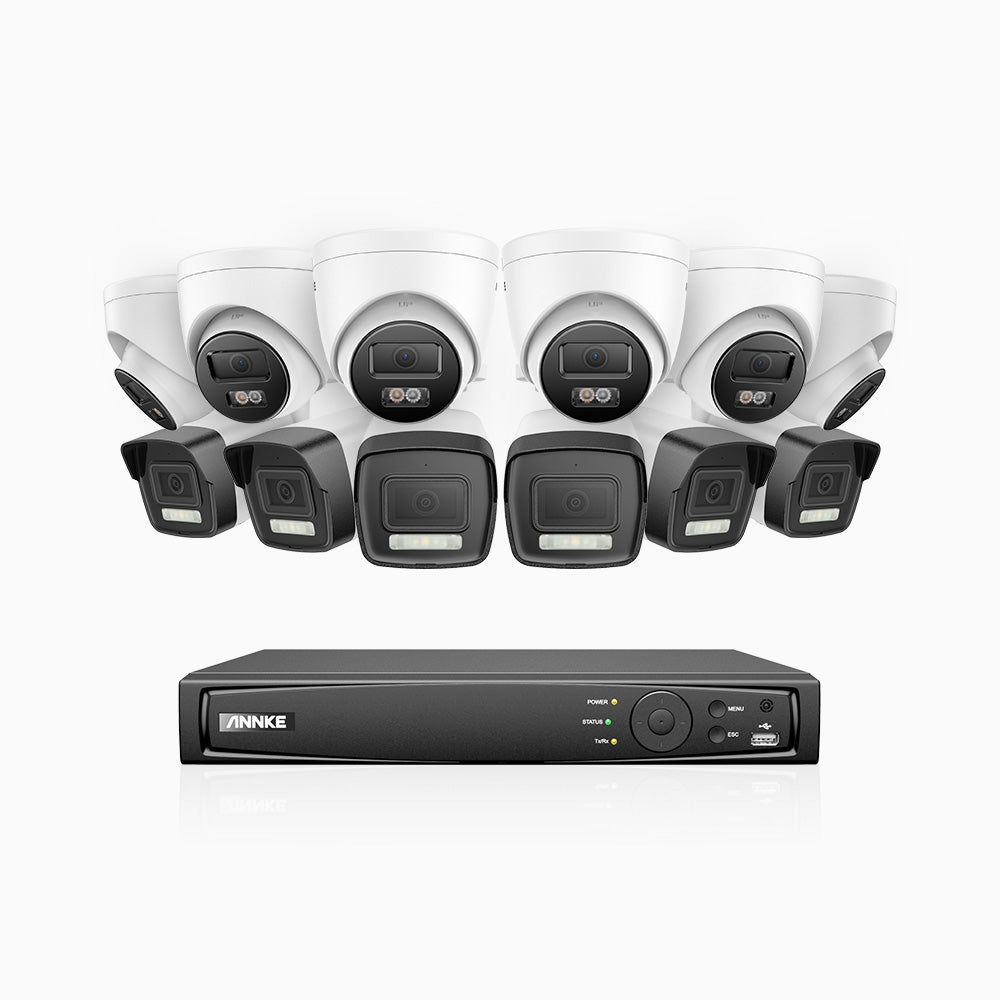 H500P - Zestaw do Monitoringu PoE 12 Kamery (6 Tubowa & 6 Kopułkowa) 3K z 16-Kanałowy Rejestratorem NVR, Noktowizja Pelny Kolor & EXIR, rozdzielczość 3072*1728, przysłona f/1.6 (0.005 Lux), detekcja ludzi i pojazdów, wbudowany mikrofon, IP67