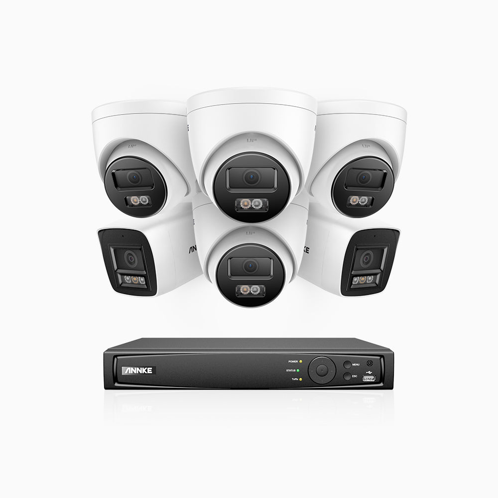 H800 - Zestaw do Monitoringu PoE 6 Kamery (2 Tubowa & 4 Kopułkowa) 4K z 8-Kanałowy Rejestratorem NVR, Noktowizor kolorowy i IR, 1/2.4" progresywny sensor CMOS, Identyfikacji osób lub pojazdów, Wbudowany mikrofon, IP67, Obsługuje RTSP i ONVIF
