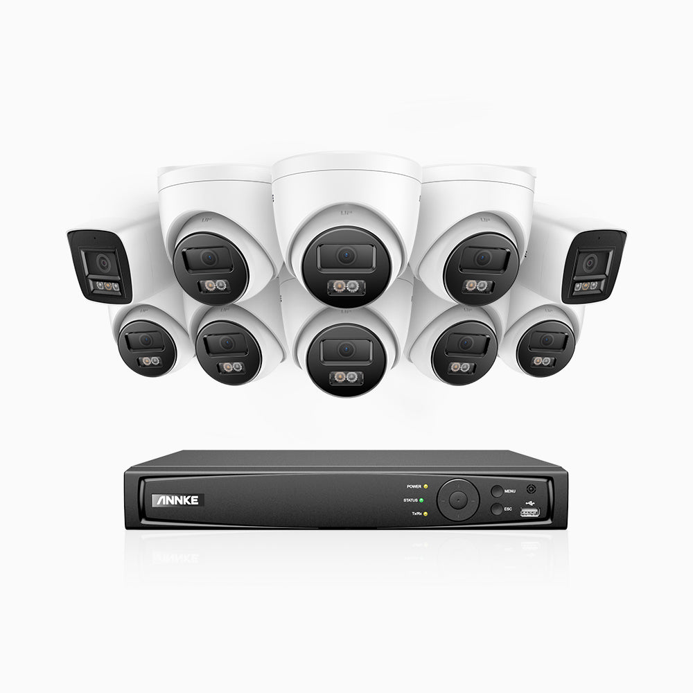 H800 - Zestaw do Monitoringu PoE 10 Kamery (2 Tubowa & 8 Kopułkowa) 4K z 16-Kanałowy Rejestratorem NVR, Noktowizor kolorowy i IR, 1/2.4" progresywny sensor CMOS, Identyfikacji osób lub pojazdów, Wbudowany mikrofon, IP67, Obsługuje RTSP i ONVIF