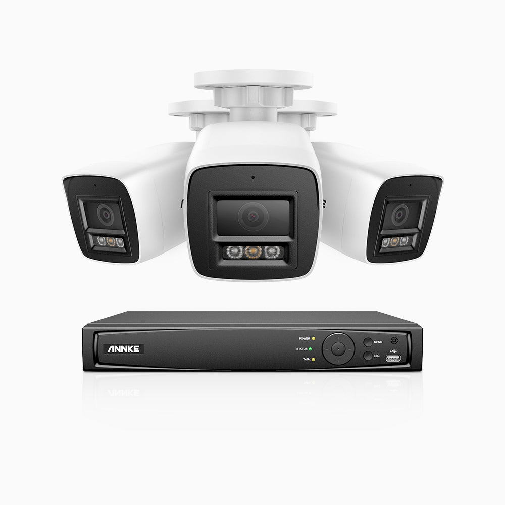 H800 - Zestaw do Monitoringu PoE 3 Kamery 4K z 4-Kanałowy Rejestratorem NVR, Noktowizor kolorowy i IR, 1/2.4" progresywny sensor CMOS, Identyfikacji osób lub pojazdów, Wbudowany mikrofon, IP67, Obsługuje RTSP i ONVIF