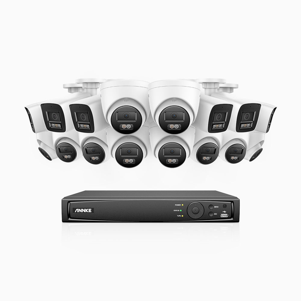 H800 - Zestaw do Monitoringu PoE 16 Kamery (6 Tubowa & 10 Kopułkowa) 4K z 16-Kanałowy Rejestratorem NVR, Noktowizor kolorowy i IR, 1/2.4" progresywny sensor CMOS, Identyfikacji osób lub pojazdów, Wbudowany mikrofon, IP67, Obsługuje RTSP i ONVIF