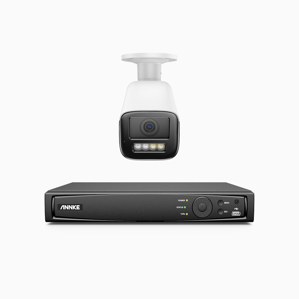 HZ804 - Zestaw do Monitoringu PoE 1 Kamery 4K z 8-Kanałowy Rejestratorem NVR, Zoom Optycznym 4X, Noktowizja podwójne światło, detekcja ruchu 2.0, Wbudowany mikrofon, syrena i stroboskop