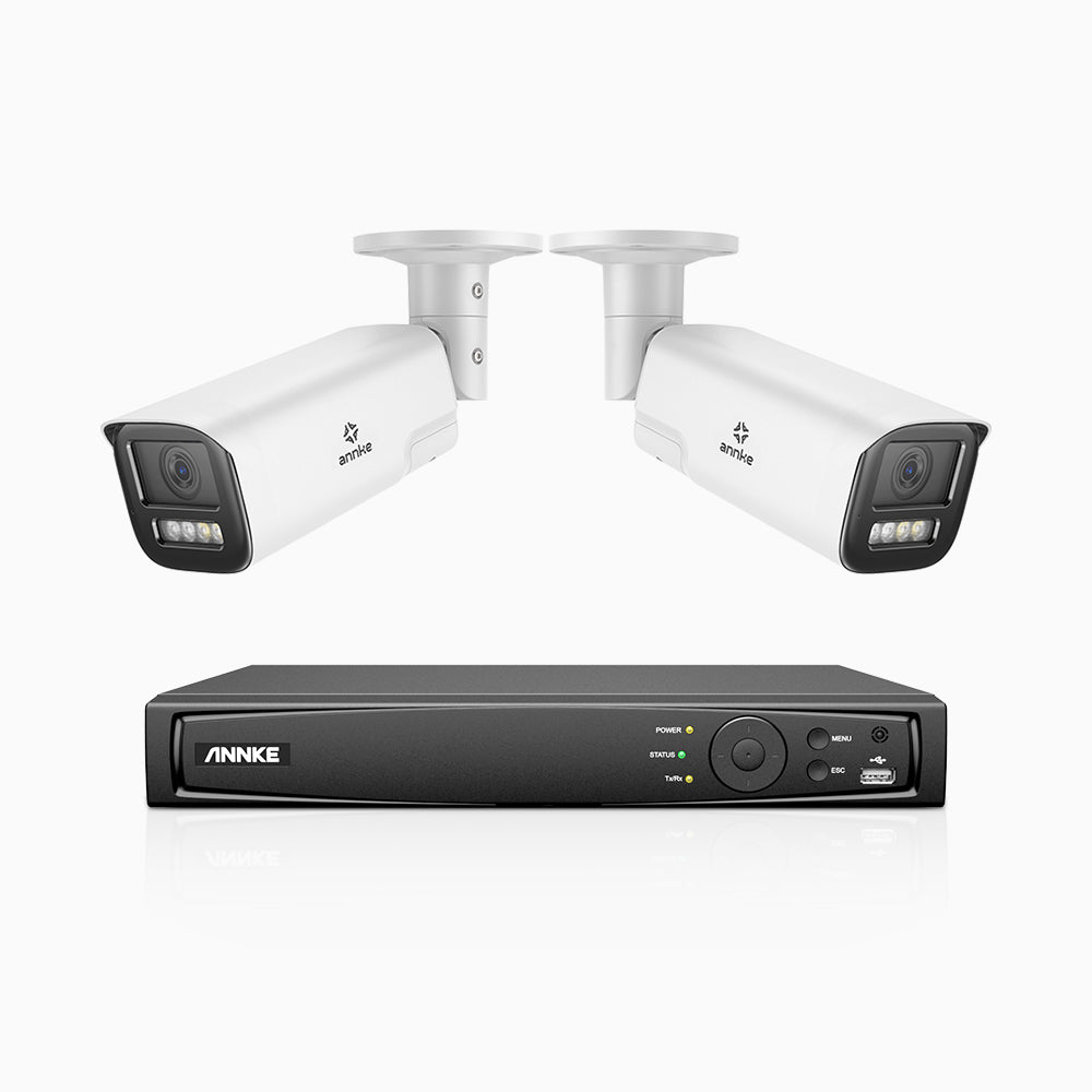HZ804 - Zestaw do Monitoringu PoE 2 Kamery 4K z 4-Kanałowy Rejestratorem NVR, Zoom Optycznym 4X, Noktowizja podwójne światło, detekcja ruchu 2.0, Wbudowany mikrofon, syrena i stroboskop