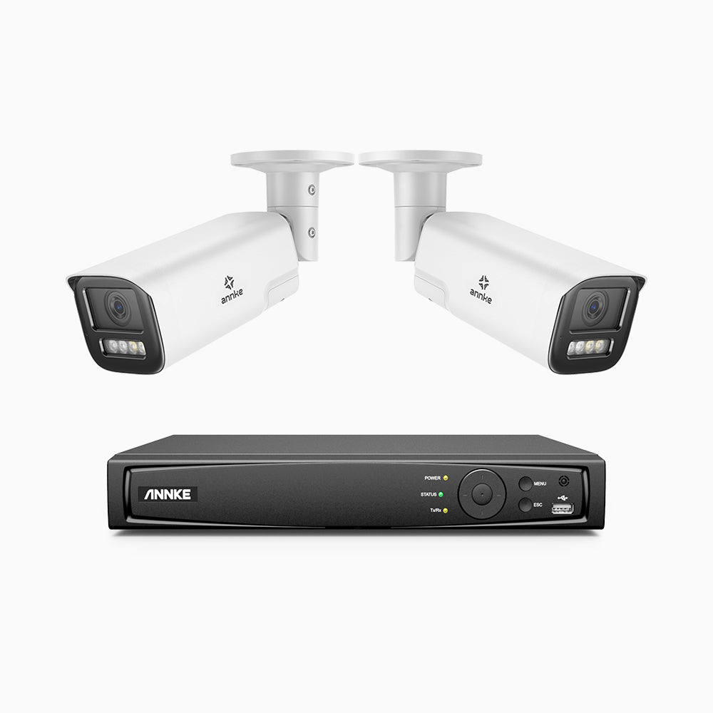 HZ804 - Zestaw do Monitoringu PoE 2 Kamery 4K z 8-Kanałowy Rejestratorem NVR, Zoom Optycznym 4X, Noktowizja podwójne światło, detekcja ruchu 2.0, Wbudowany mikrofon, syrena i stroboskop
