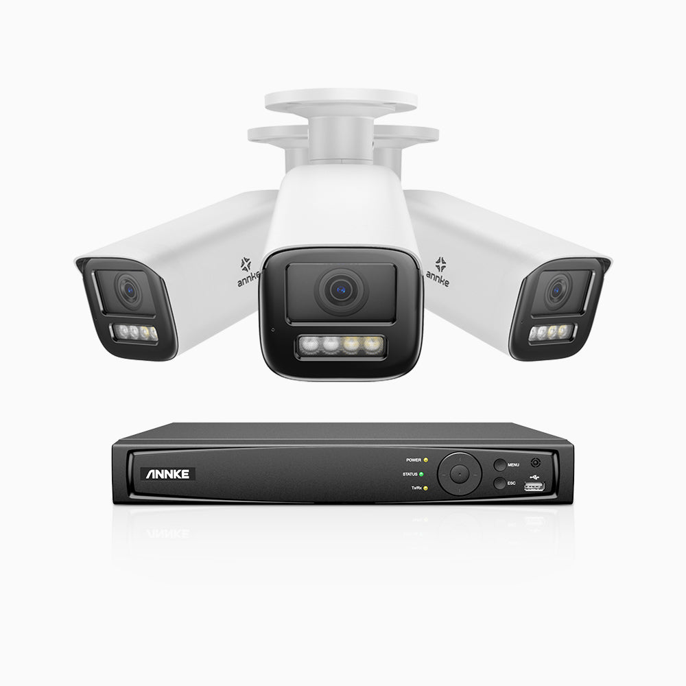 HZ804 - Zestaw do Monitoringu PoE 3 Kamery 4K z 4-Kanałowy Rejestratorem NVR, Zoom Optycznym 4X, Noktowizja podwójne światło, detekcja ruchu 2.0, Wbudowany mikrofon, syrena i stroboskop