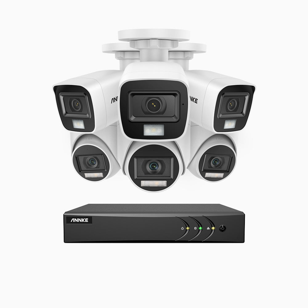 ADLK500 - Zestaw do Monitoringu Przewodowa 6 Kamery (3 Tubowa & 3 Kopułkowa) 3K z 8-Kanałowy Rejestratorem Hybrydowy, Noktowizją Podwójne światło, przysłoną f/1.2 Super Aperture, sygnałem wyjściowym 4 w 1, wbudowany mikrofon, Klasa wodoszczelności IP67