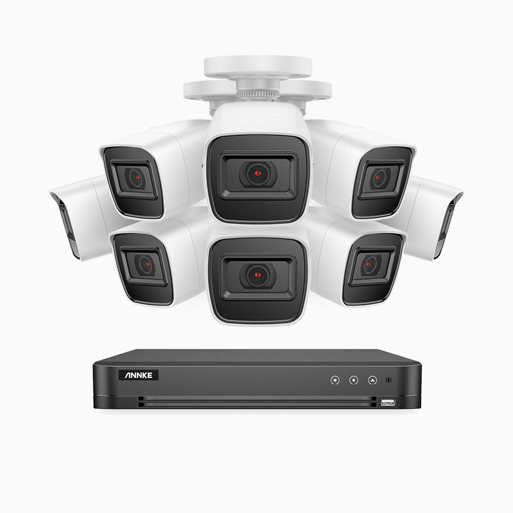 Kamery wideo ANNKE 8MP CCTV używają mocnej wodoodporności w klasyfikacji IP67 — poziom wyżej niż IP66 — i najbardziej solidnej obudowy z plastiku/metalu, zapewniając kamerom wodoodpornośc i bezproblemową pracę w ekstremalnie gorących i niskich temperaturach.