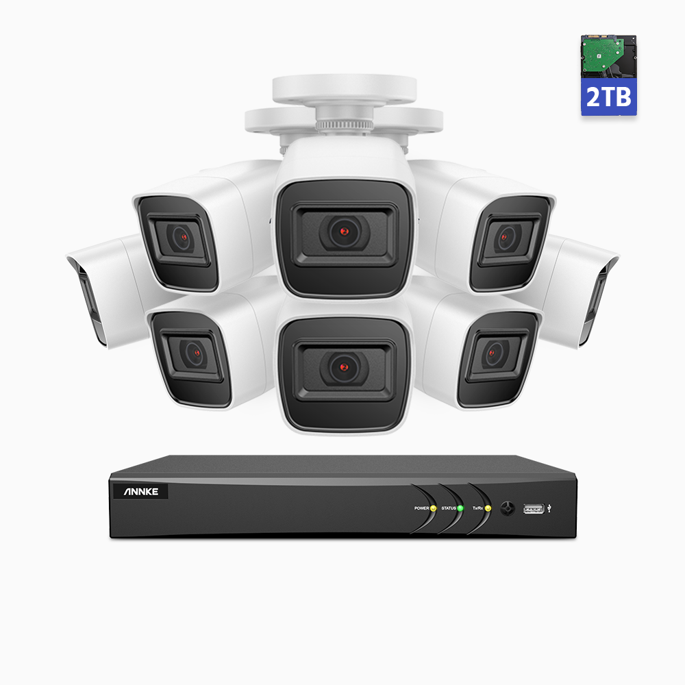 Kamery wideo ANNKE 8MP CCTV używają mocnej wodoodporności w klasyfikacji IP67 — poziom wyżej niż IP66 — i najbardziej solidnej obudowy z plastiku/metalu, zapewniając kamerom wodoodpornośc i bezproblemową pracę w ekstremalnie gorących i niskich temperaturach.