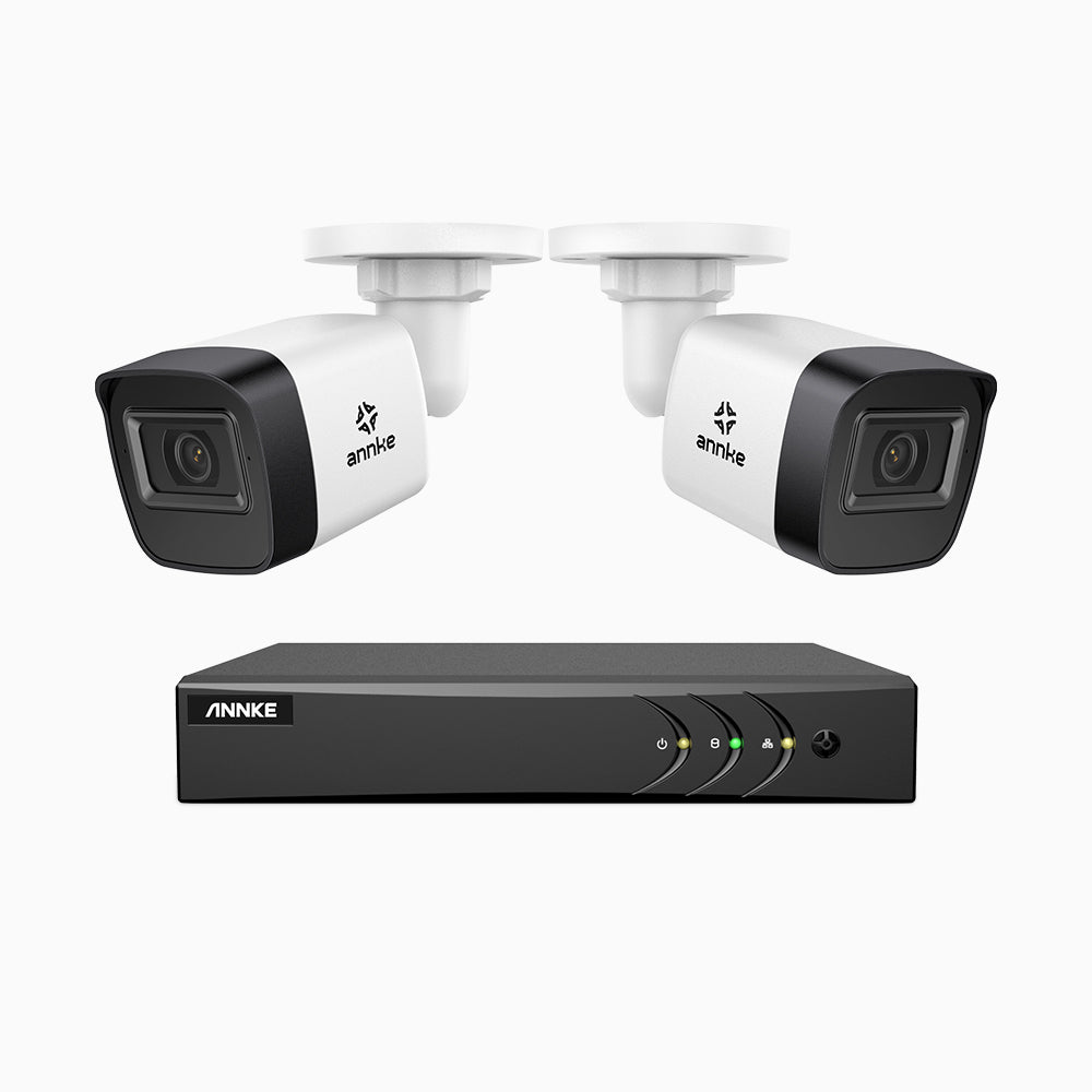 EL200 - Zestaw do Monitoringu Przewodowa 2 Kamery 1080P z 4-Kanałowy Rejestratorem Hybrydowy, inteligentnym rejestratorem DVR z wykrywaniem ludzi i pojazdów, Noktowizja EXIR, sygnałem wyjściowym 4 w 1, IP67